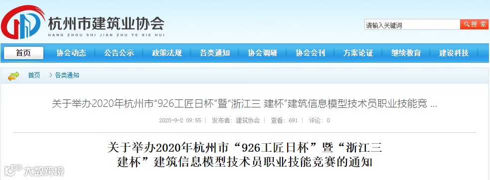 为进一步倡导工匠精神,形成尊重工匠创造力和贡献的氛围,推动我市建设行业高技能人才队伍建设,根据市建委、市人力社保局、市总工会《关于开展2020年杭州市建设行业职业技能竞赛的通知》(杭建市(2020)85号)文件精神,决定举办2020年杭州市“926工匠日杯”暨“浙江三建杯”建筑信息模型技术员职业技能竞赛。现将有关事项通知如下: