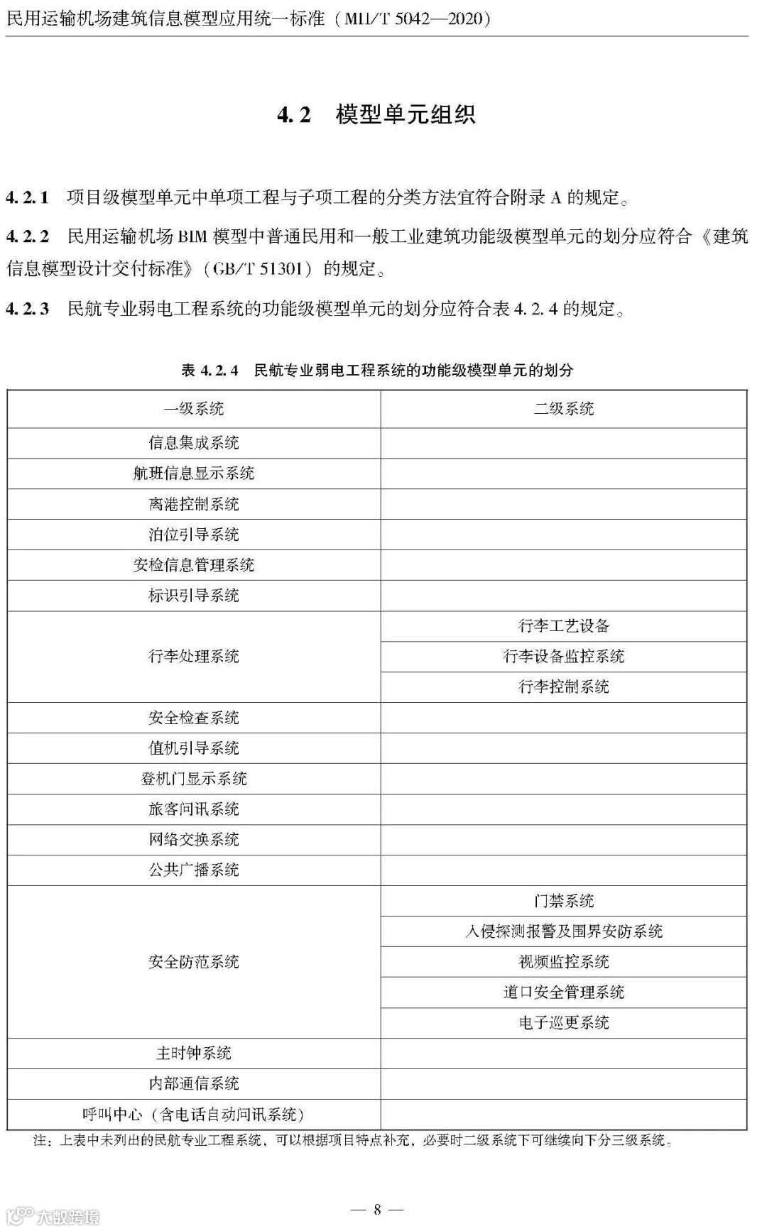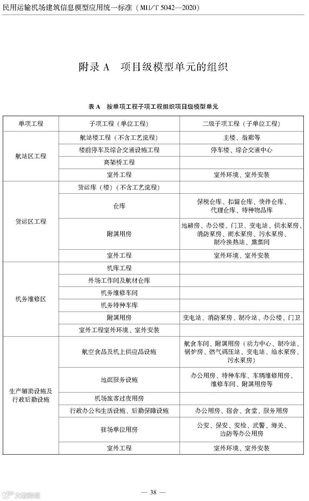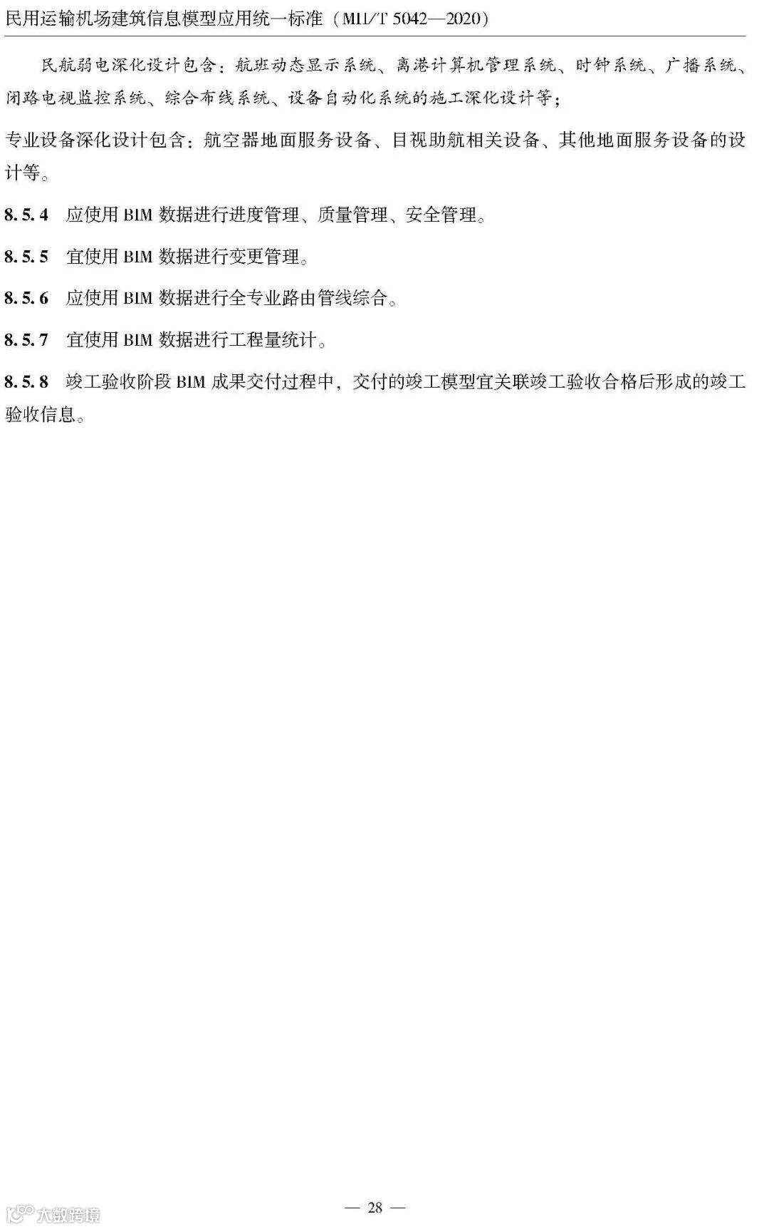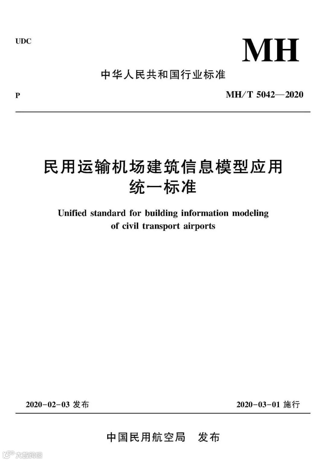 现发布《民用运输机场建筑信息模型应用统一标准》(MH/T5042-2020),自2020年3月1日起施行。