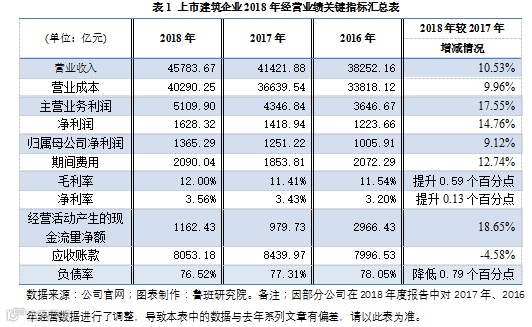 通过对2018年56家上市建企财报解读,上市建筑企业发展的特征如下: