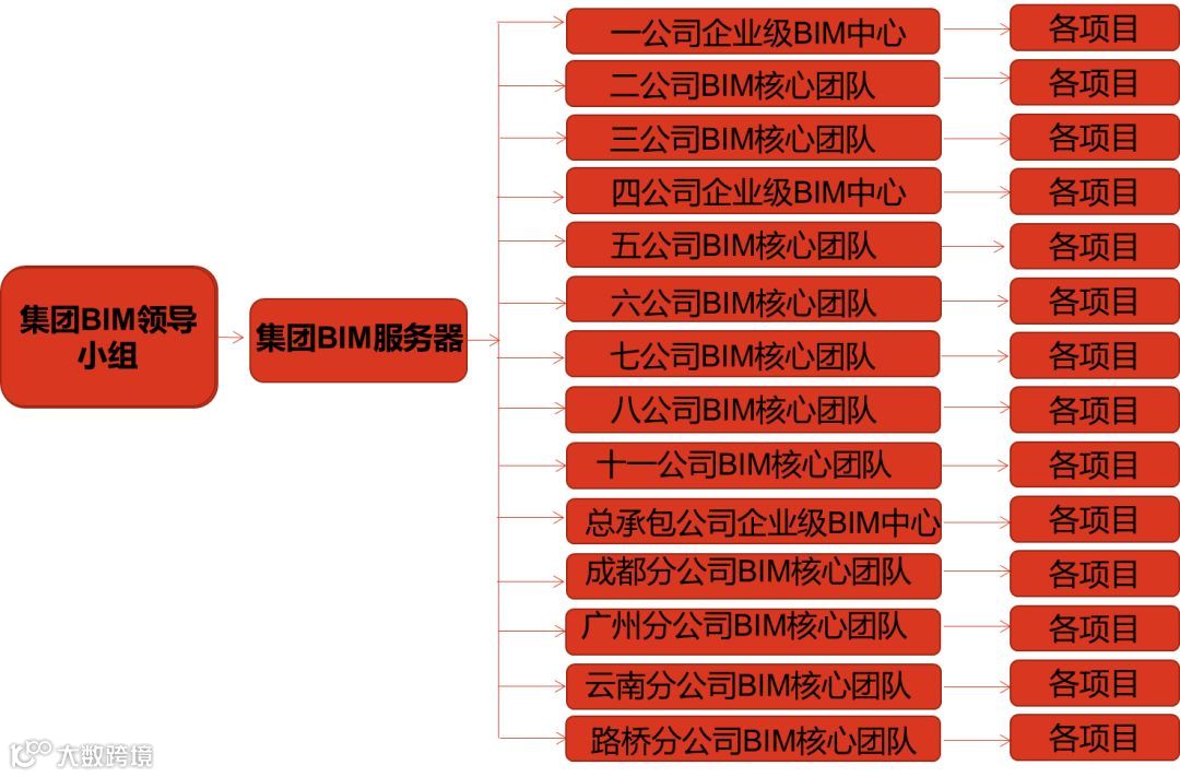 根据《贵州建工集团BIM技术应用实施细则》,集团成立了BIM领导小组,负责指导集团的BIM推广应用和考核工作,集团所属各相关单位成立BIM应用领导小组,全面负责本单位BIM应用的实施工作,BIM核心团队负责人由各单位主要负责人担任。集团各分公司根据企业人才情况、BIM应用情况分别设立了企业级BIM中心和BIM核心团队,其中集团总承包公司、一公司、四公司组建了企业级“BIM中心”,集团其他公司组建“BIM核心团队”。