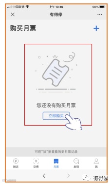 点击有得停公众号成功后,即可点击购买月票界面。