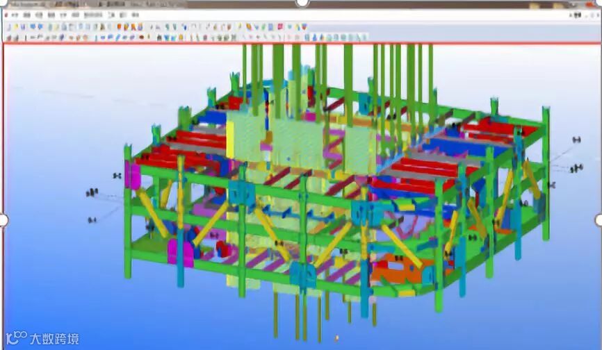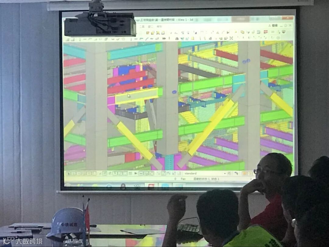 提前利用建成的钢结构伸臂桁架层的模型进行预拼装可视化交底,可以直观展示拼装流程,节省拼装时间,并为现场吊装施工提供保障。