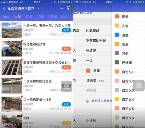 雷迪森大世界项目是浙江花园建设有限公司承建的项目,为打造东阳市优质项目,项目部按照施工管理体系,以JGJ59—2011安全检查标准为依据,在施工过程中引入安全风险评估与预测机制,并实施分色分级管控,编制出针对性强的专项安全方案和保证措施。同时,工地实施信息化管理,配置了远程监控系统、扬尘噪音监控联动系统、人脸识别系统、鲁班BIM协同平台等,保证工地现场实时受控,极大提升工地的安全管理、扬尘治理水平。