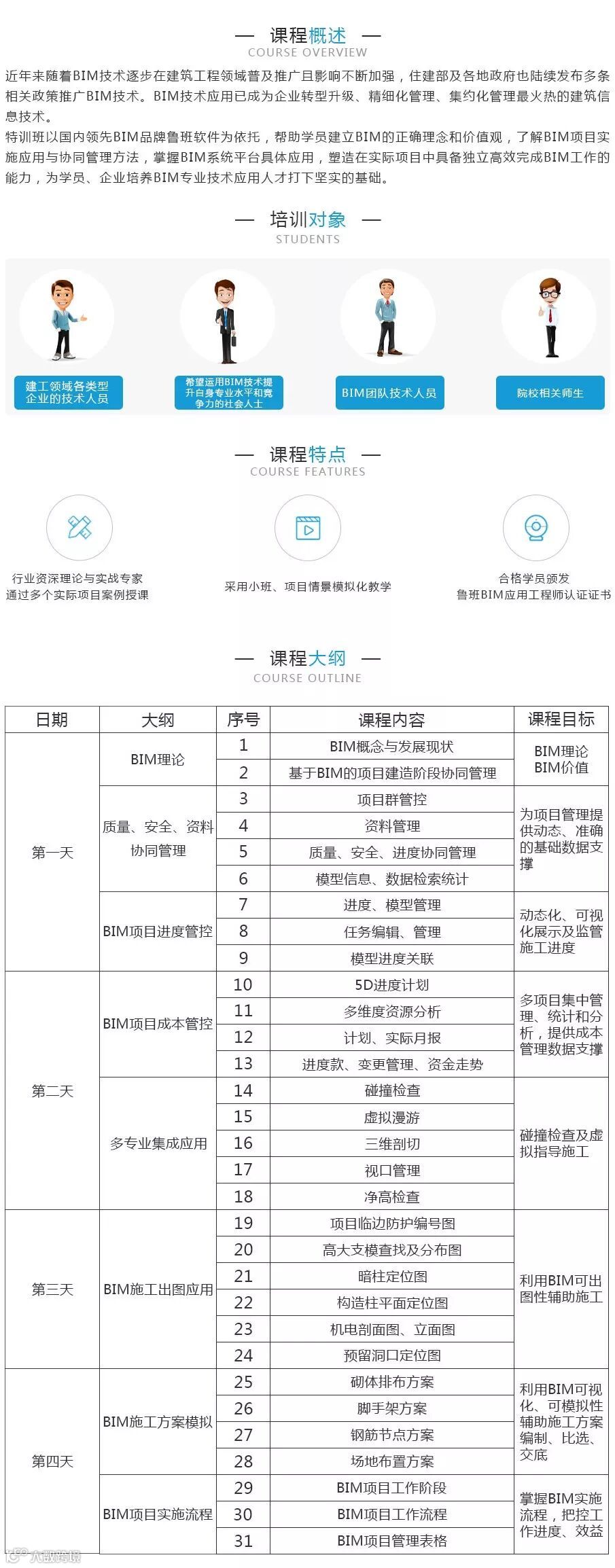 注:费用包含鲁班BIM系统平台1个月使用费、培训费、培训资料、课件。来往交通、住宿费、餐费等敬请自理。