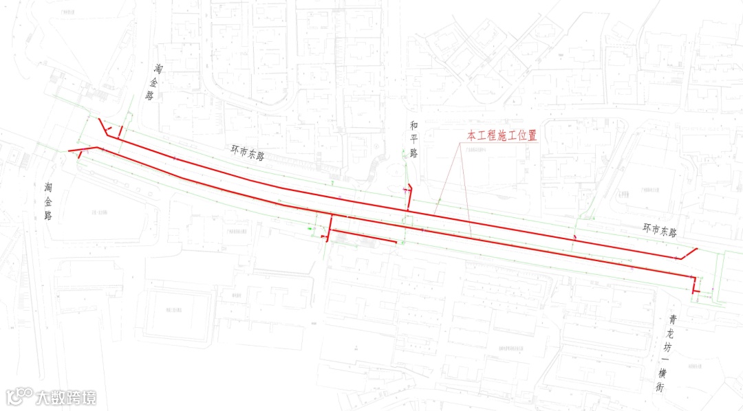 夜间施工时,来往环市路车辆可绕行东风路。施工路段设置施工提示和配备交通引导人员,社会车辆和行人请听从交通引导人员指挥,安全有序通行。