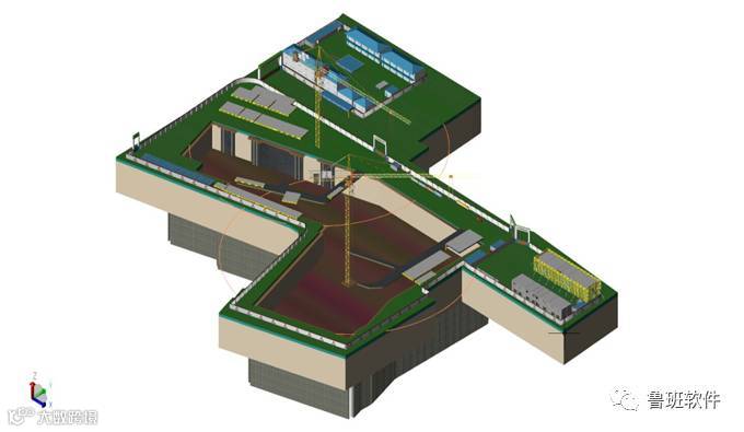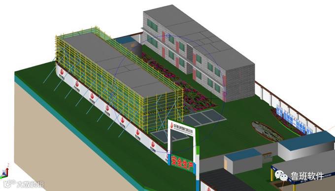 现场三维平面布置:通过虚拟场地排布,提前将办公区、施工区进行合理规划。