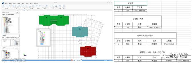 利用BIM模型,快速统计出各区混凝土量,用以控制现场实际用量 。