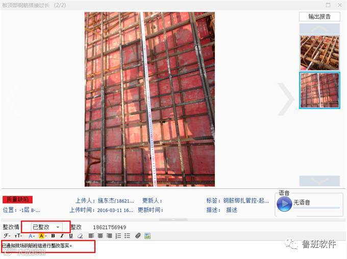 针对发现的现场问题,联系现场对应责任人进行及时整改,并将整改后的信息及时的反馈到系统中,形成管理上的闭环,提高项目管理水平。