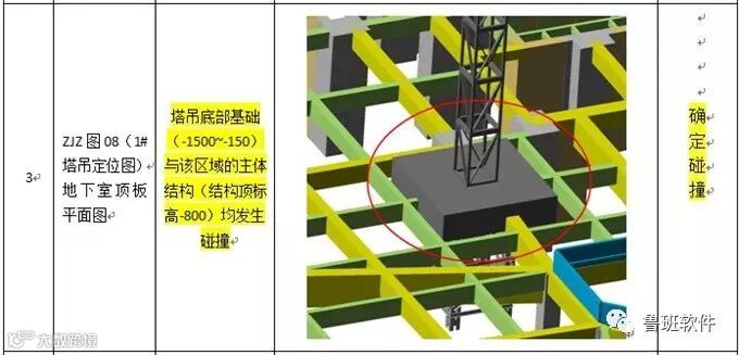 塔吊与主体结构碰撞模拟。恒大项目通过塔吊与主体结构的碰撞模拟,共发现活动碰撞4处,确定碰撞1处,对施工进度造成一定影响,确定碰撞塔吊周围的主体结构无法按进度施工,只能待塔吊拆除时施工,存在一定质量安全隐患。