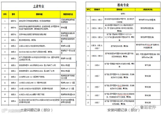 图纸问题发现。建立BIM模型过程中,发现大量图纸问题,为项目图纸会审工作提供了第一手依据,提前避免返工、误工等问题,方便后期施工,提升工程质量,提高人员效率,保证了会审的质量。此次建模过程中共发现284处问题,包括地下室设计图纸问题254处以及地上图纸问题30处 ,其中土建结构部分163处,建筑55处,机电66处。