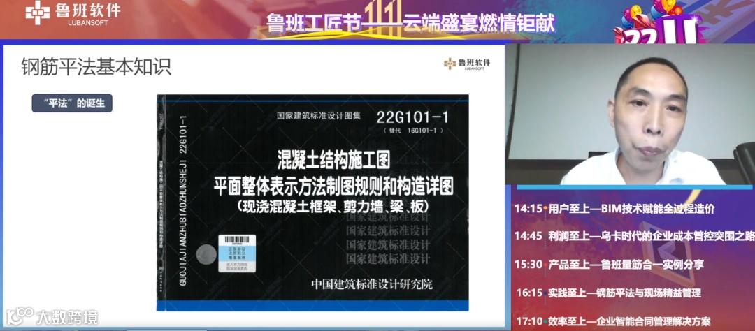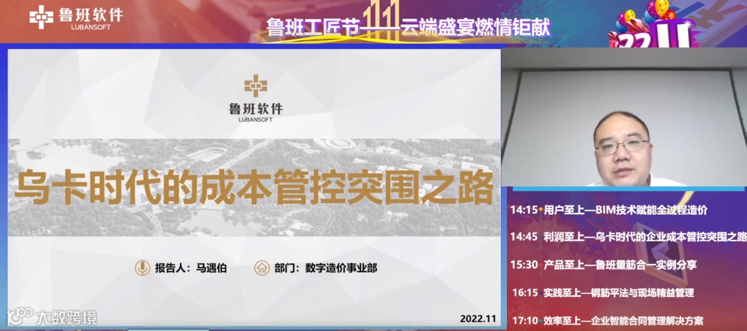2022年11月11日,鲁班工匠节—双十一云端盛宴在线上成功举办。中建八局上海分公司钢筋精益管理工程师向云国及鲁班软件多位产品经理为用户带来了精彩分享,活动吸引了近万人关注,现场互动热烈,干货满满。