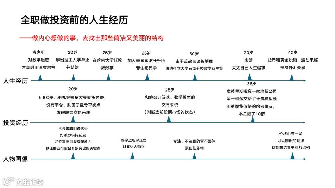 詹姆斯西蒙斯,从一个纯粹的数学理想出发,历经初创的阵痛、探索的迭代,最终构建起一个强大的量化投资帝国。这个过程并非一帆风顺,充满了合伙人的分歧、模型的失效、团队的更迭以及对自我的怀疑。但贯穿始终的,是对事物本质的探寻、对原创性思维的尊重,以及在深度和维度上不断进化的系统性思考。