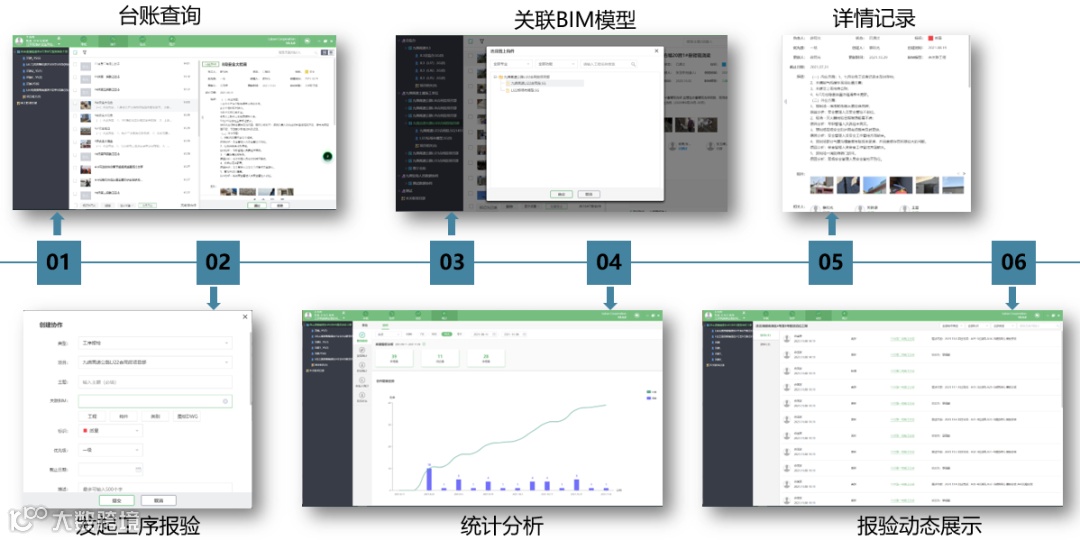 除了BIM+GIS+物联网的结合、BIM+业务结合,我们实现业财档一体化管控。分为四个板块:工序报验、质检评定、计量支付和电子档案。