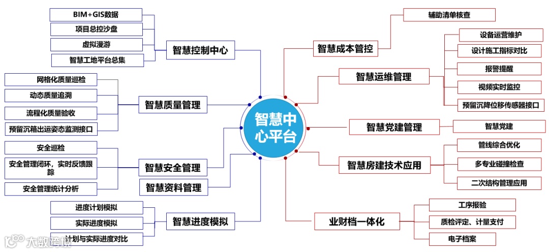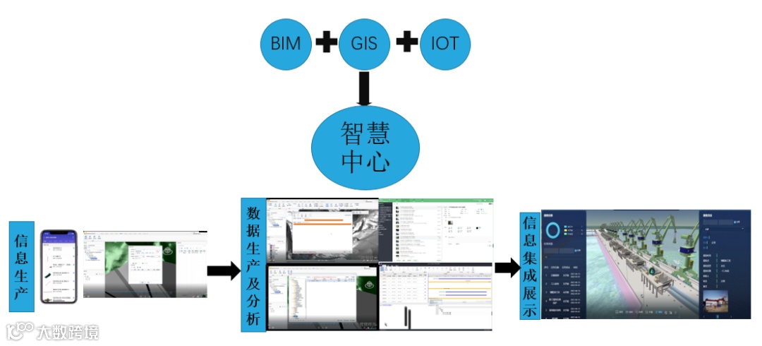 智慧中心平台组织架构的核心路线,以智慧中心平台为主线,结合BIM+GIS+IOT物联,通过信息收集,对数据进行生产及分析,最后把数据进行集成展示。