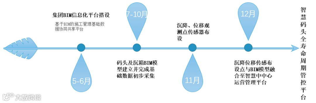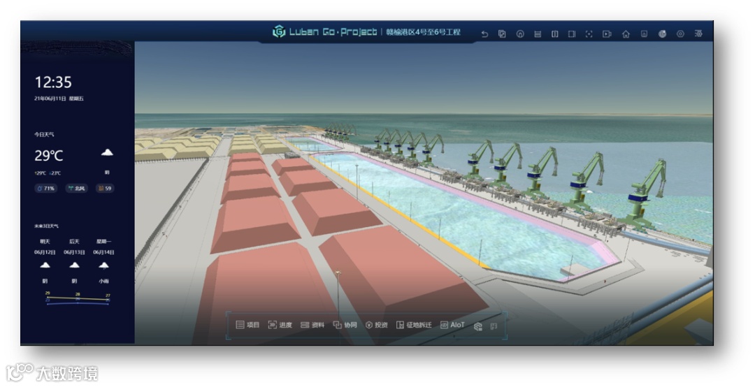 综合运用BIM管理平台+物联网等现代信息化技术,形成连云港港赣榆港区4号至6号智慧中心运营管理平台,为项目、公司提供决策数据支持,实现对工程进度,质量、安全、成本等方面的管理,协助管理人员在施工及运营阶段有效决策和精细管理。