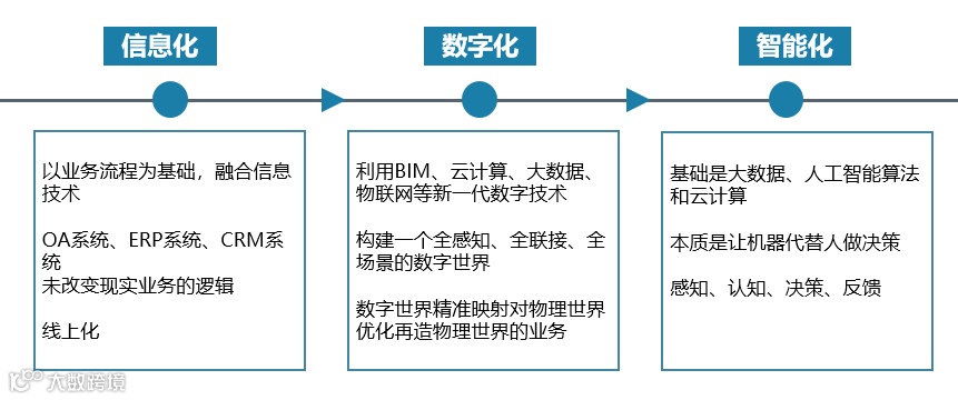 目标主要分为信息化、数字化、智能化三个阶段,项目属于数字化中后期。项目的建设目标为 “1套标准”、“1个中心” “1个平台” “N个应用”,即制定1套BIM技术应用标准、建设1个企业级BIM大数据中心、开发1个基于BIM的建管平台、涵盖建设全生命周期的多个应用。