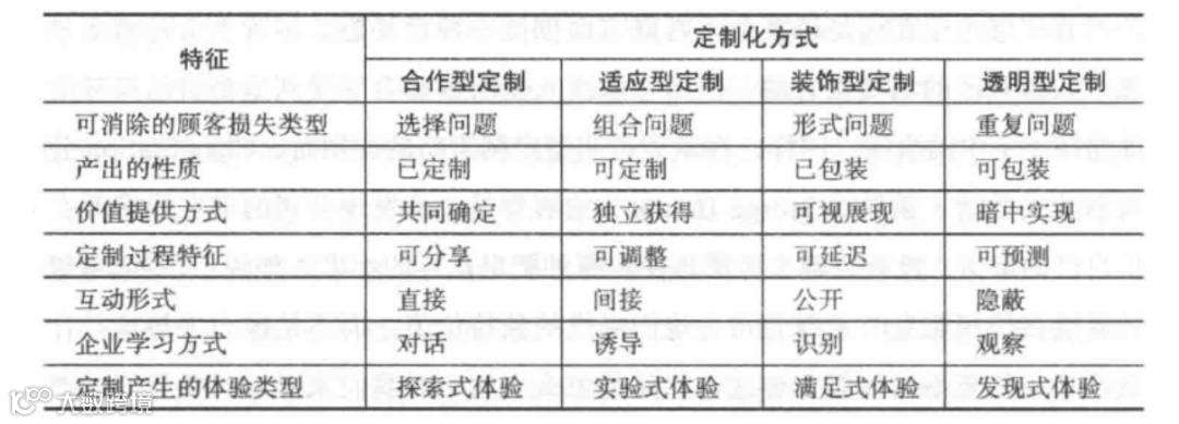 2、合作性定制:是让客户自行探索发现其内心需求,从而避免了在选择产品时出现某些方面满意某些方面不满意的情形。主要应对客户被迫做出困难的多角度取舍性困难。合作型定制商和客户互动时,首先改变的是产品的表现形式,当客户确定需求后,再改变产品本身。比如客户在选购一副眼镜时,眼镜公司会首先为客户拍一张面部数码照片,然后利用设计系统对客户面部的特性属性进行分析,再提供一系列形容词供消费者选择(如正式、传统、自然、运动、端庄等),来确定客户最喜欢的搭配效果。