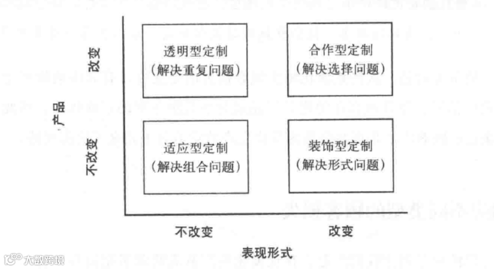 4、装饰型定制:主要出现在客户望而却步的原因不是产品功能,而是产品表现形式时,即产品如何 包装和呈现,何时何地以何种方式交付等,这时企业就要采用装饰型定制法了。比如T恤,手机壳鼠标垫上的图案和文字可以由客户来定制,由产品方提供设计原型图,再由消费者做具体取舍,不满意还可以继续修改。这个服务体验非常便捷、简单且自我。让客户感受到这种定制化是专为我服务的。