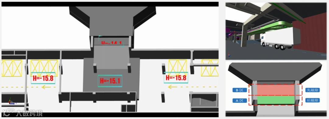 本项目在施工过程中发现环隧入口位置存在高差问题,根据现场施工情况,BIM团队对会议中存在争议的两种方案进行了三维模型的方案模拟,通过对比直观地反映了两种方案的优劣势,不仅解决了实际的施工问题,还节省了多次沟通方案的时间。