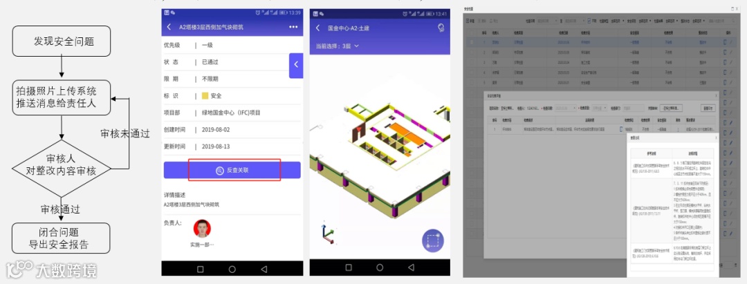 手机端可识别模型中的每个构件,通过三维模型可快速找到具体安全隐患位置,同时对现场问题位置的拍照挂接相关构件,能够让相关人员快速地找到问题所在,缩短问题的反馈时间。