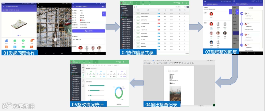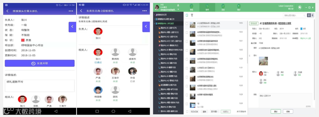 通过手机端发起协作验收流程,流程可直接拍摄现场问题位置,调取相关资料文件,指定相关人员复核问题,手机端不仅方便快捷,还能够直接反查模型,形成动态化质量追溯。