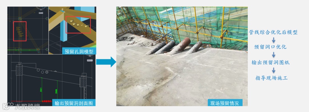 基于Luban iWorks云平台能够快速复核孔洞位置,留存的孔洞数据可随时调用,一键生成孔洞报告,模型变更后亦可快速更新来重新生成模型,大大节省了再次复核图纸的时间。目前本项目已优化洞口100个。