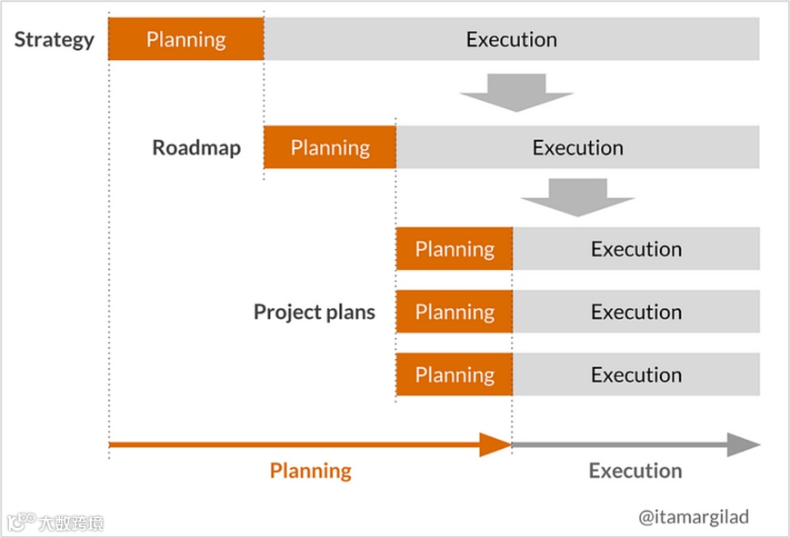 在技术领域,我们在很大程度上继承了前辈行业的业务管理方法,随之而来的是P&E——战略、路线图、项目计划,甚至需求规范都是规划的形式。