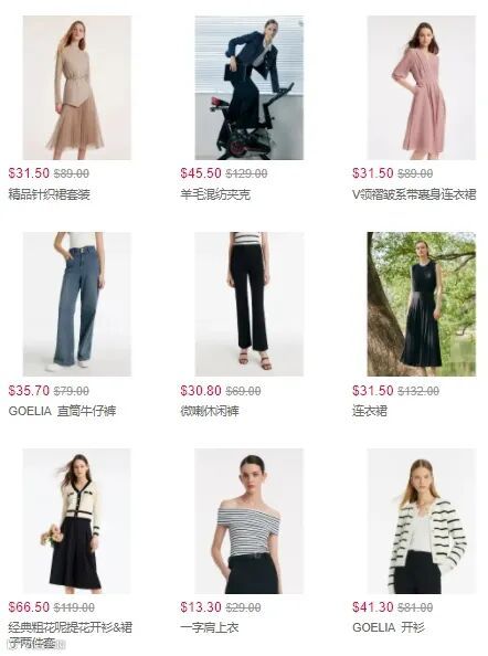 1、Goelia 六月清仓 低至3.5折+无门槛立减$10,需要使用优惠码:10DM
