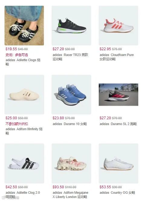 1、adidas 鞋类专场,低至6折+额外8.5折,需要使用优惠码:DM15