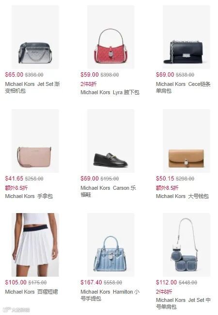 1、Michael Kors 奥莱低至3折,清仓款式2件8折