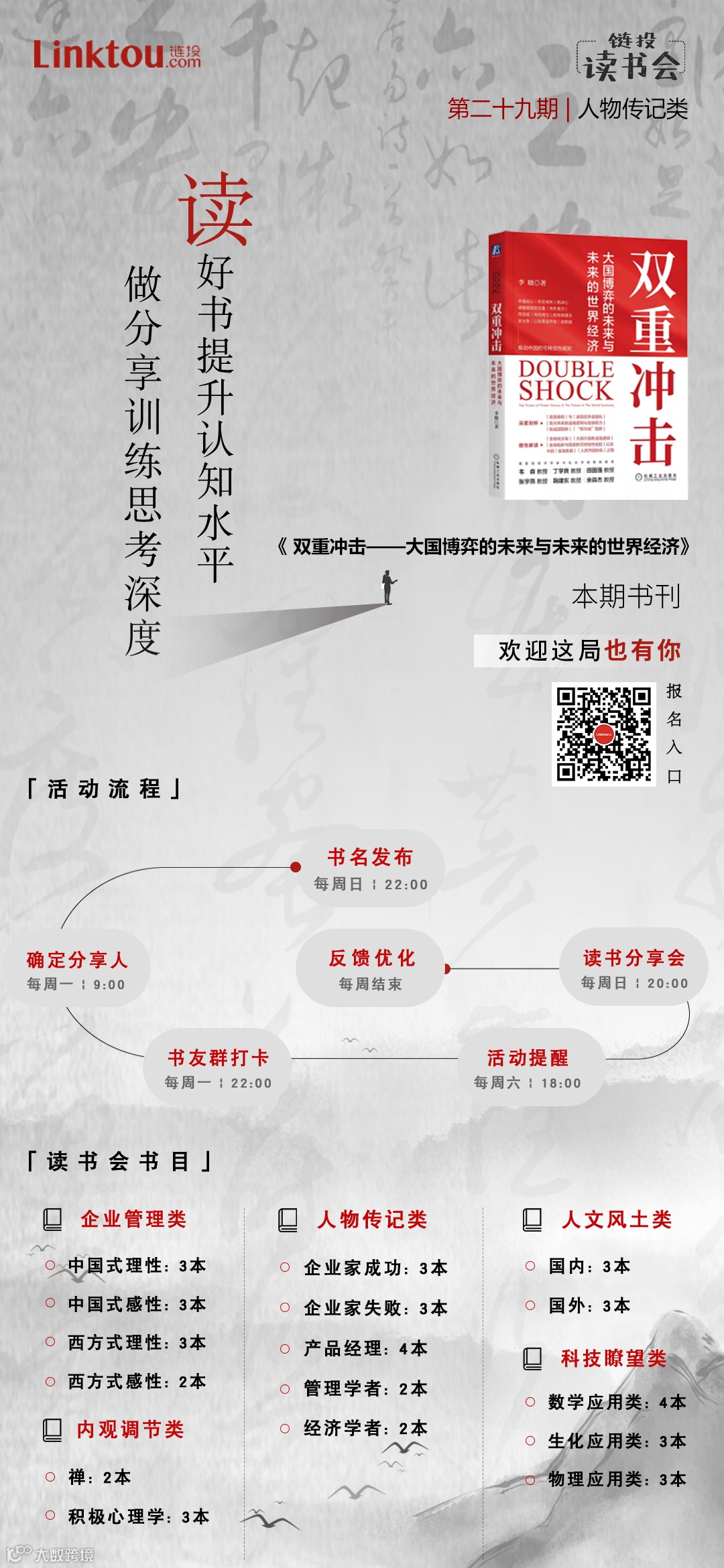 2023年春天,我们发起每周共读一本书籍,关注我们一起提升认知水平,通过分享训练思考深度。