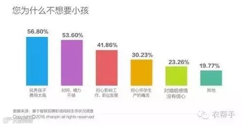 早在全面二孩政策正式实施以前,笔者曾引用人口学者的观点,认为该政策的生育刺激作用有限,依据是之前“单独二孩”政策效果欠佳。而最近,智联招聘《2016年职场妈妈生存状况调查报告》,更加有理由让我们相信,此次全面二孩政策对全国人口增长和人口结构的变化很难带来显著的改变。报告显示,从生育意愿调查结果来看,未生育二胎的女性当中,不想生育二胎的比例为58.71%,而在未生育的女性中,不想要小孩的比例为20.48%。注意:这里面有两大信号需要引起我们的重视,一是二孩的生育意愿极低,有接近60%的职场女性不希望再生育二孩,这说明二孩政策对女性的刺激极其有限;二是在未生育女性中,也有两成的女性会选择不生育,这意味着“单生主义者”或“不育家庭”将在未来成为中国社会一个不可忽视的群体,这在日美等发达国家已经较为明显。