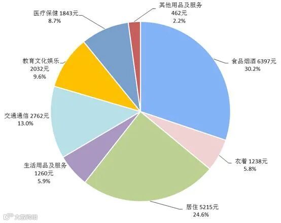 2020年全国居民人均消费支出及构成 来源:国家统计局