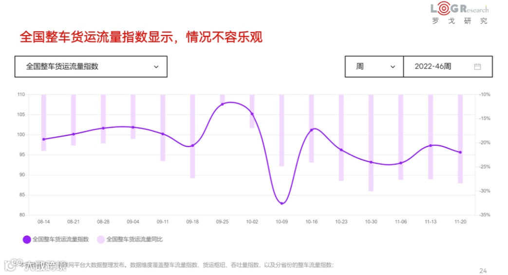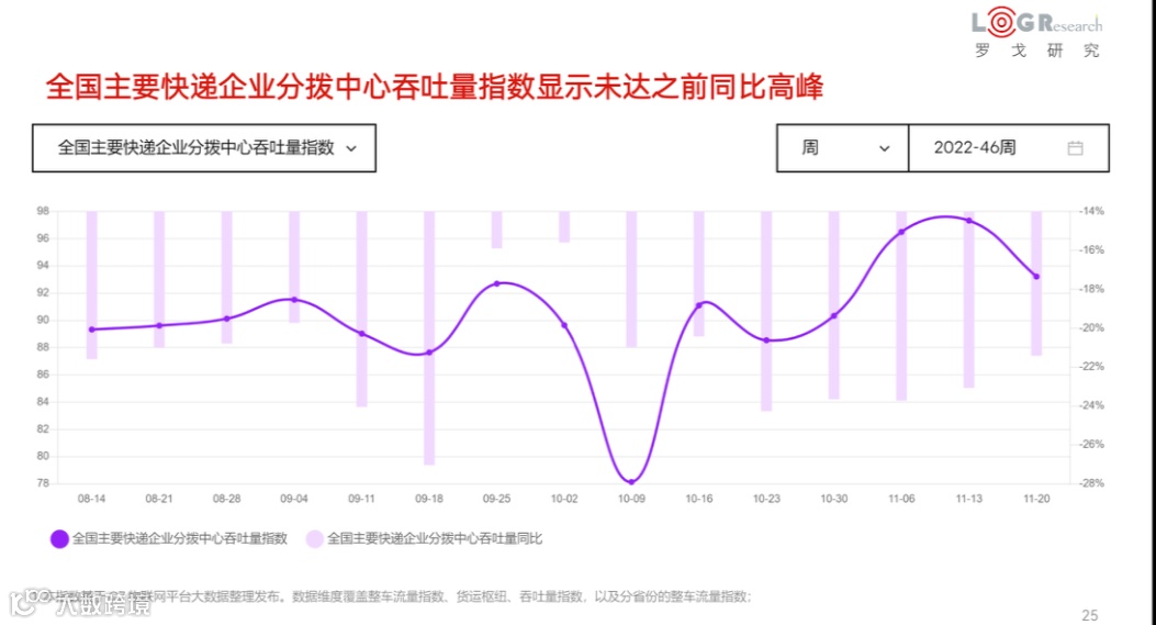 根据G7的全国公路货运流量数据显示,1-11月份,无论是全国主要快递企业分拨中心吞吐量指数,还是全国公共