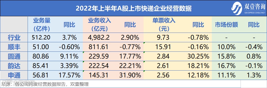 上半年经营数据丨圆通韵达差距缩小,申通奋起直追