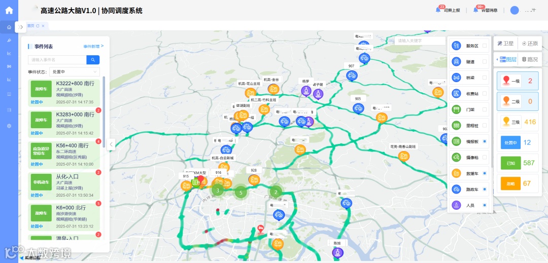 (1)协同调度:围绕道路事件,实现涵盖事件管理、指挥调度、后评估、应急预案、危险源管理及应急演练的全流程管控。