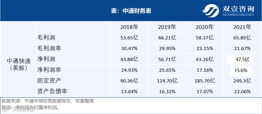 中通毛利润虽然只有65.9亿元,对比顺丰毛利润为256.3亿元,但是中通的毛利率21.7%对比顺丰毛利率12.3%,两者相差9.4%。