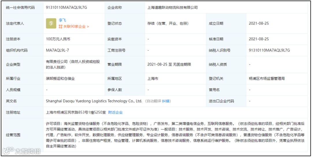 今年8月,字节跳动还成立了2家物流子公司。其中上海道趣跃动物流科技有限公司的经营范围包括海关监管货物仓储服务;普通货物仓储服务,数据处理服务,供应链管理服务,物业管理等。上海星辰跃动供应链管理有限公司经营范围包括海关监管货物仓储服务、普通货物仓储服务等。