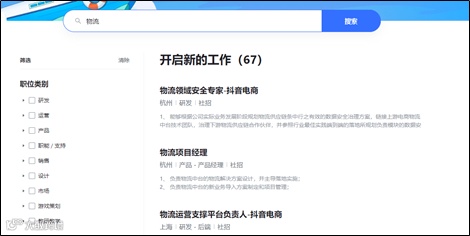 目前字节跳动官网发布的招聘岗位中,与“物流”相关的岗位有67个,与“电商物流”相关的岗位有32个。此外,据媒体报道,今年已有多位前阿里P9供应链/物流人才加入抖音电商物流团队。