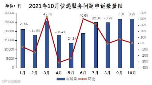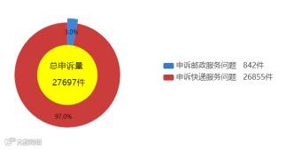 用户对快递服务问题申诉26855件,环比增长0.8%,同比增长56.9%。