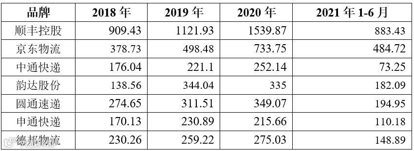 2021年上半年顺丰控股营业收入883.43亿元,超通达系四家企业总和560.47亿元;且保持了高速增长,2019年和2020年顺丰控股营业收入较上年分别增长23.37%和37.25%。