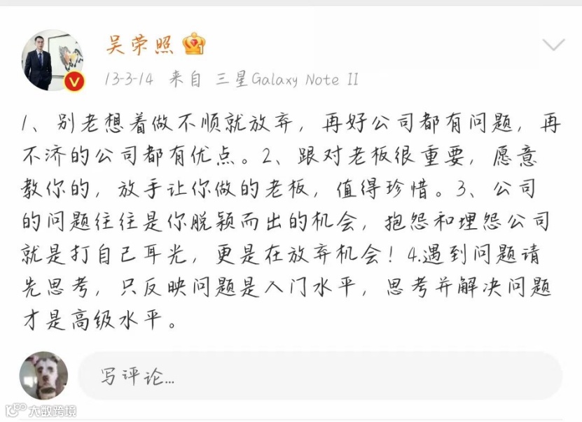 鸿星尔克总裁吴荣照2013年在微博发布的一段话受到大家疯狂转发。