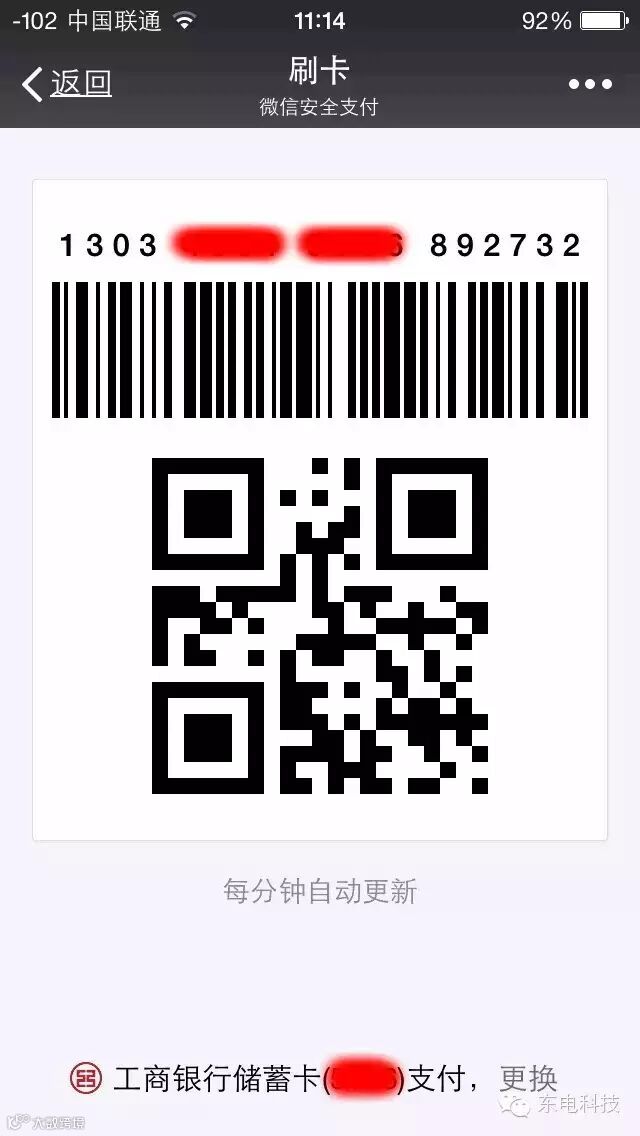 手机支付条码,可在手机微信钱包中获取:手机进入微信后,选择右下角的我----->钱包---->刷卡。