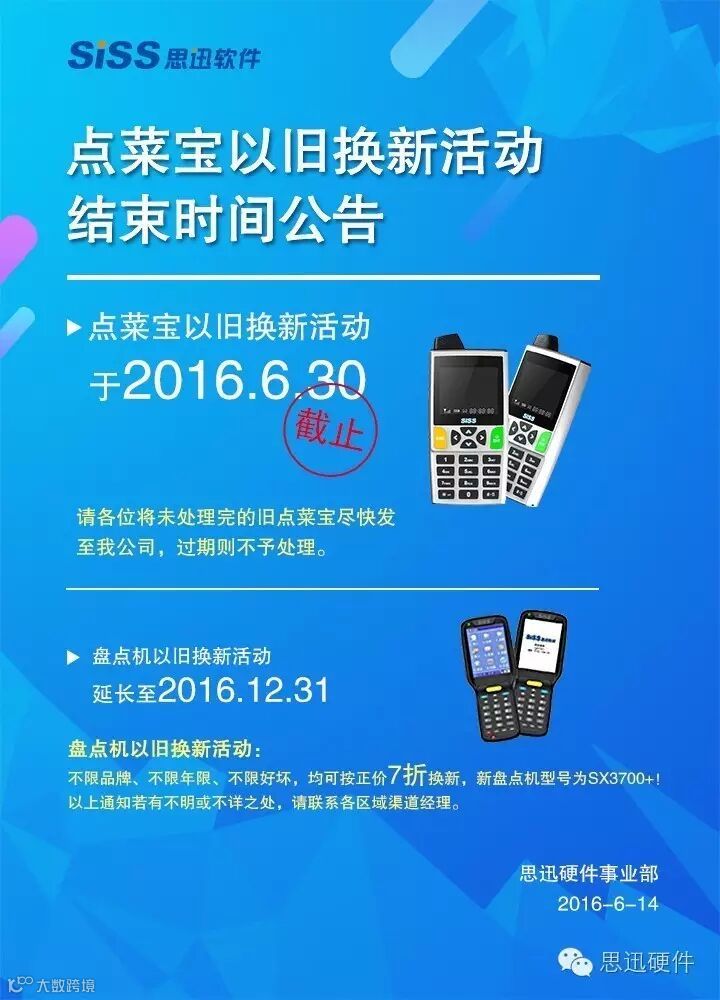 导读:点菜宝以旧换新活动马上就要结束了,小伙伴们抓紧时间来参加哦!