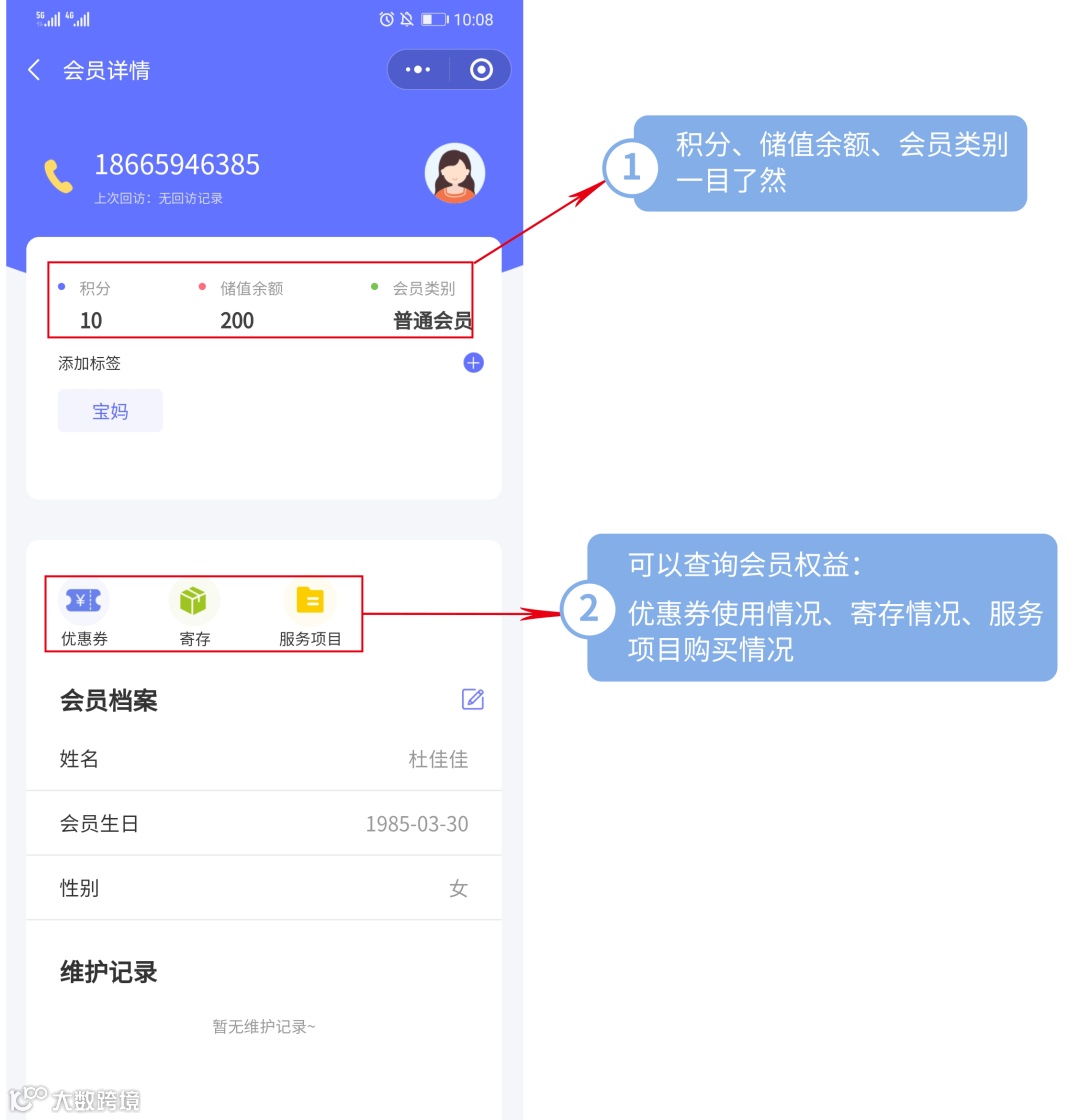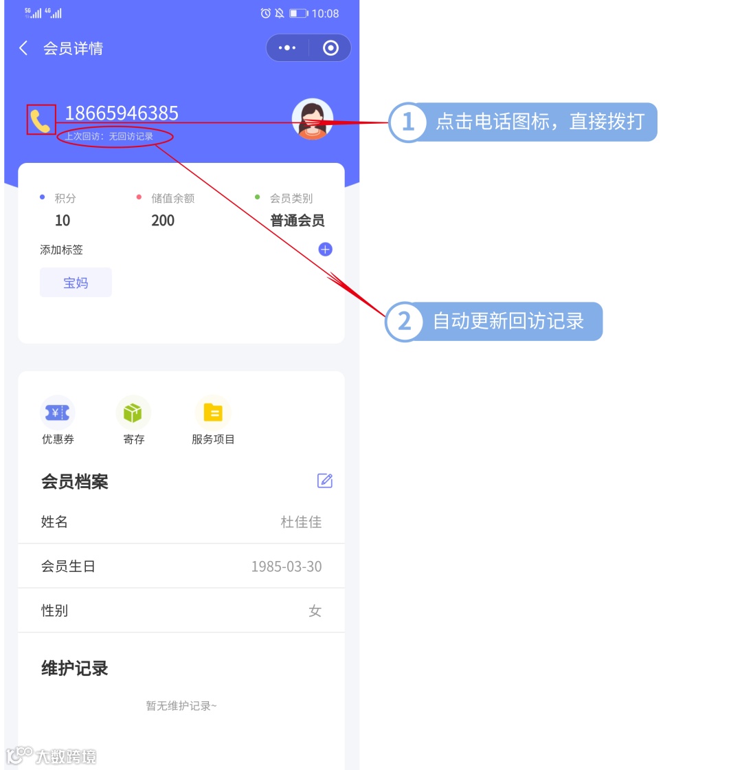 直接拨打会员电话,再也不用翻通讯录了;还能自动形成回访记录,比通话记录更清晰,做到有迹可寻。