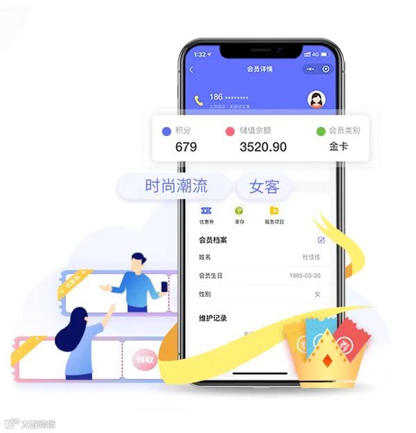 门店会员信息随意查,随时随地查看积分、储值余额、会员类别以及会员权益。