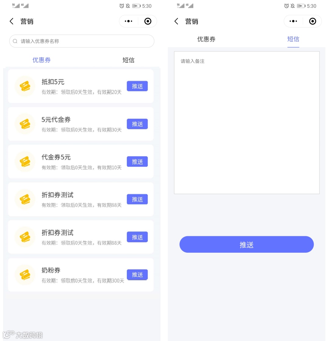 按条件筛选出来的会员,针对性的推送优惠券,或者发送短信,营销效果更理想!