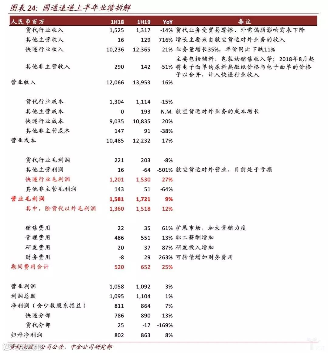 如前所述,圆通上半年单票成本管控良好,单票快递产品成本同比下降12%,单票毛利同比仅下跌4%,快递业务毛利润同比增长27%但总毛利润只增长9%;其中,货代业务毛利润下滑8%。