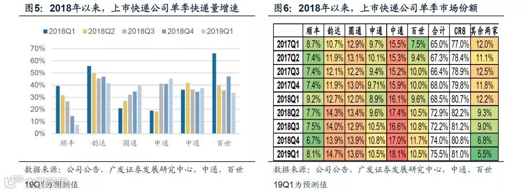 加盟快递19Q1延续高增长,单件毛利环比稳中有升