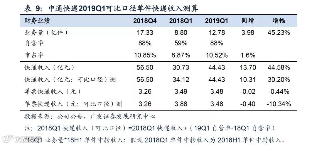 价格方面,圆通单件收入同减10.81%,考虑补贴收入口径调整,预计实际降幅约为5-6%,较18Q4的4.2%同比降幅略有扩大;申通单件收入同减0.44%,剔除收购加盟商因素,预计实际降幅约为10.34%,快递收入实际同增约30.2%。